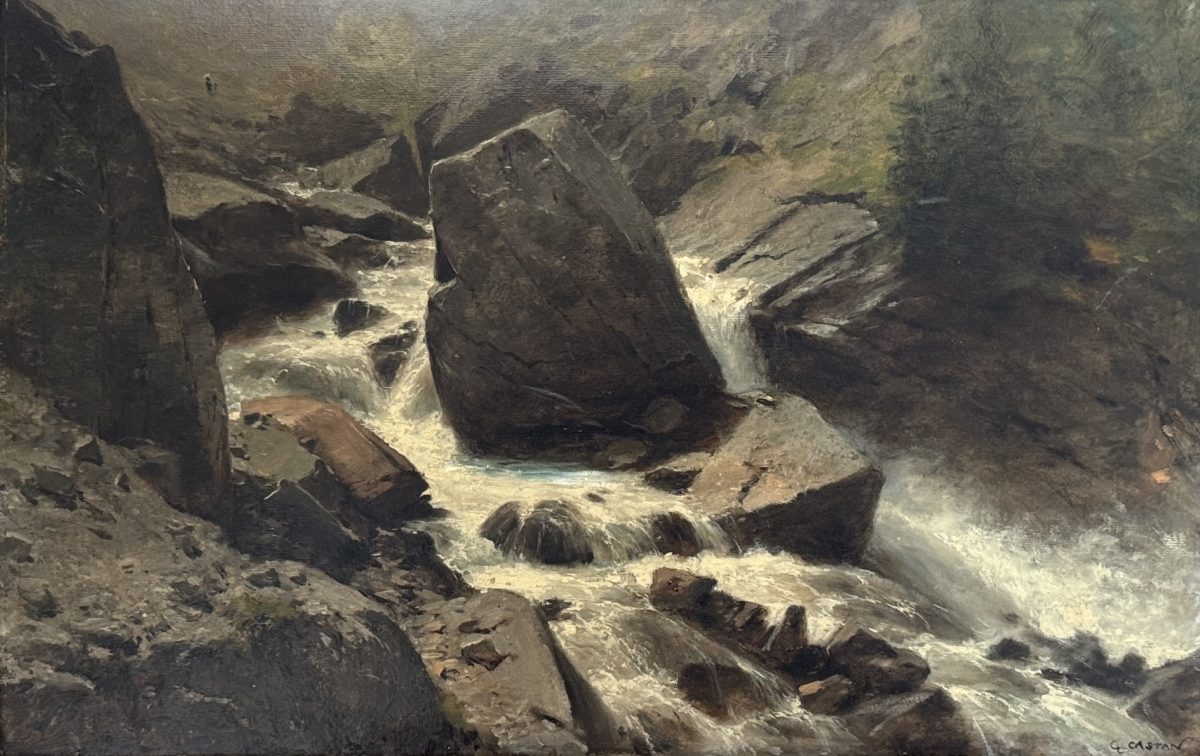 Unten rechts signiert G. CASTAN. Verso auf der Holztafel in Feder bezeichnet: à Randa, Vallée de Zermatt / Suisse / G. Castan.